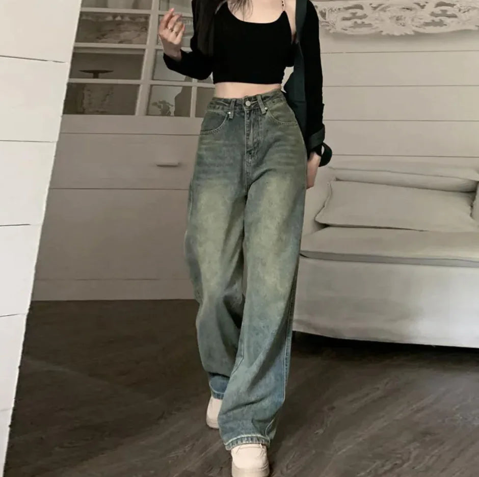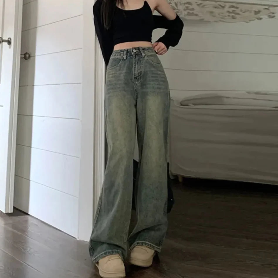 • Vintage Retro Design: Loose straight-leg cut with classic mop-style silhouette gives a relaxed, nostalgic streetwear vibe.
