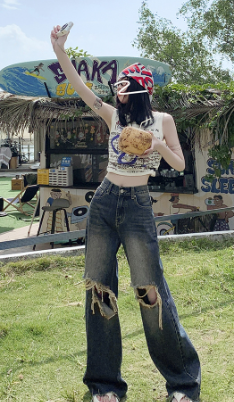 Don't miss out on the chance to elevate your style with our Retro Washed Ripped Jeans. Check out the stunning images below to see how they can transform your look!